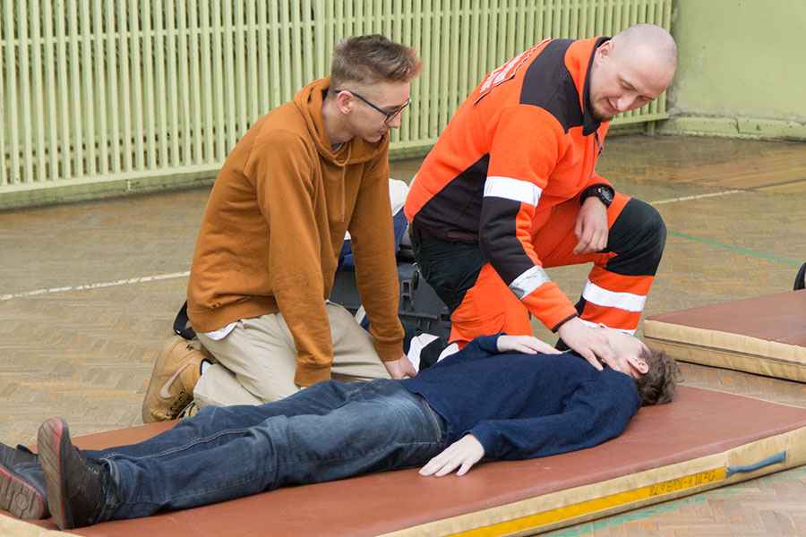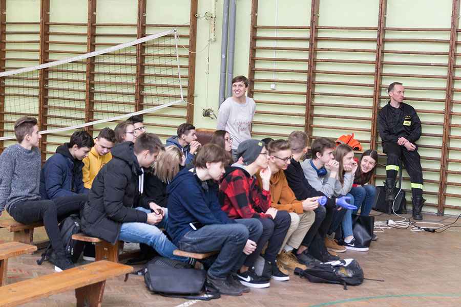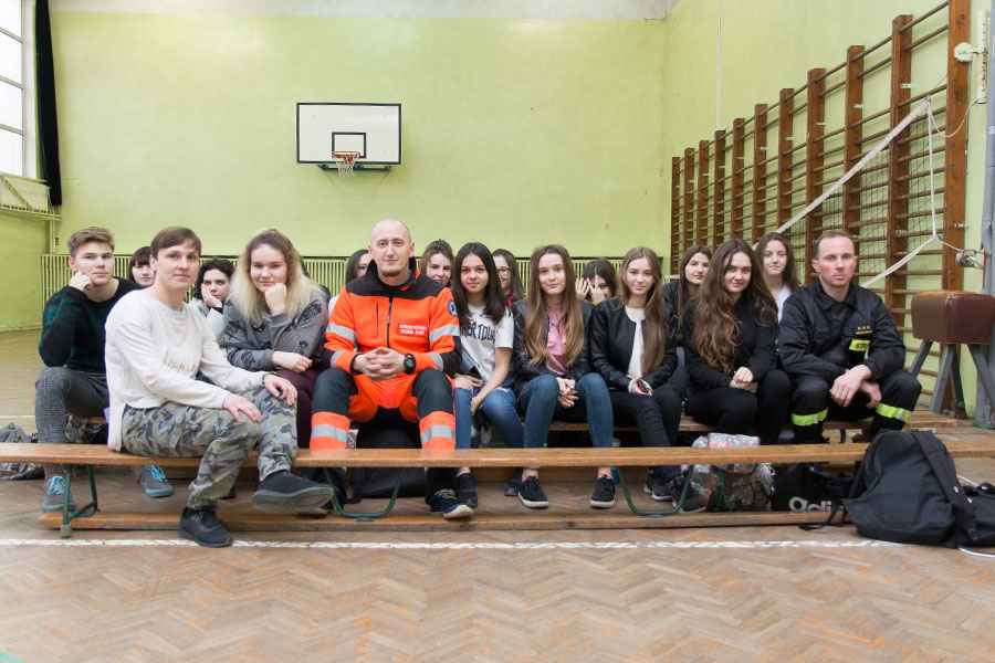 Spotkanie zorganizowała Pani Marta Królikowska - nauczyciel wychowania fizycznego a prowadzili je: Pan Michał Jędrzejczak z Zawodowej Straży Pożarnej oraz ratownik medyczny Pan Paweł Pietrasiak.