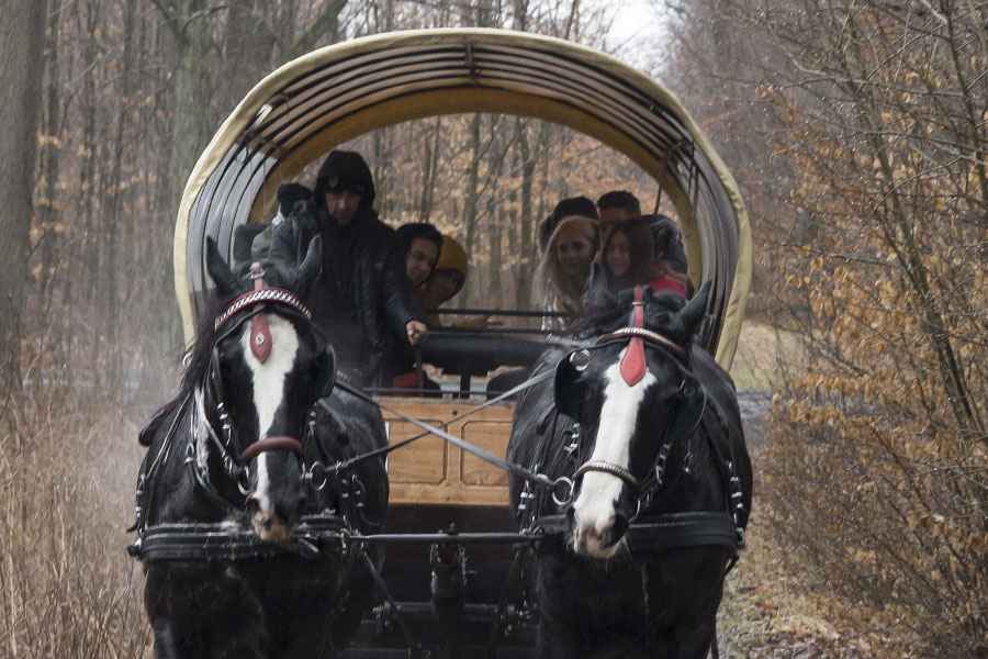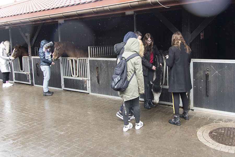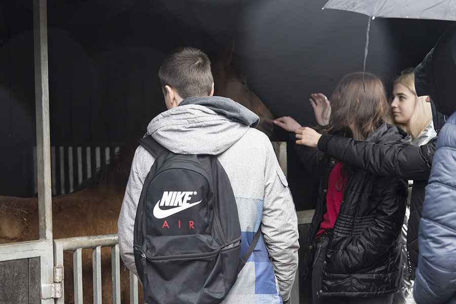 Mimo niesprzyjającej aury młodzież oraz jej opiekunowie skorzystali z możliwości przejażdżki powozami konnymi, zadaszonego grilla czy oprowadzania po stajni.
