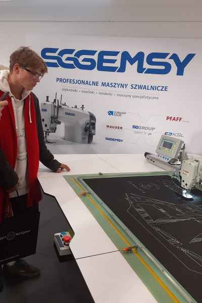 Dużym zainteresowaniem cieszył się automat do odszywania kieszeni z dwiema wypustkami. Praca człowieka to pozycjonowanie elementów oraz nacięcie różków i ich zamocowanie. Kieszenie tego typu są stosowane w marynarkach, żakietach oraz płaszczach. Maszyna gwarantuje jakość oraz dużą wydajność pracy.