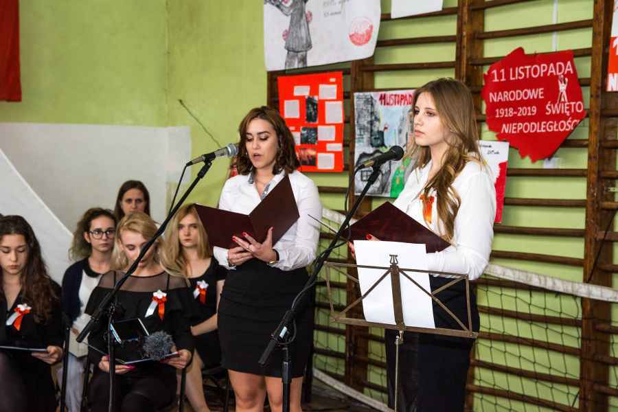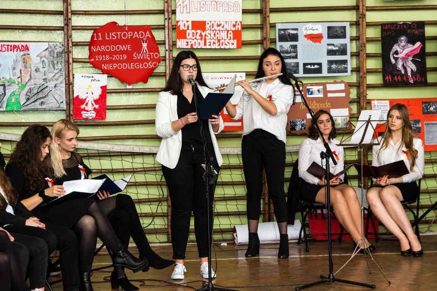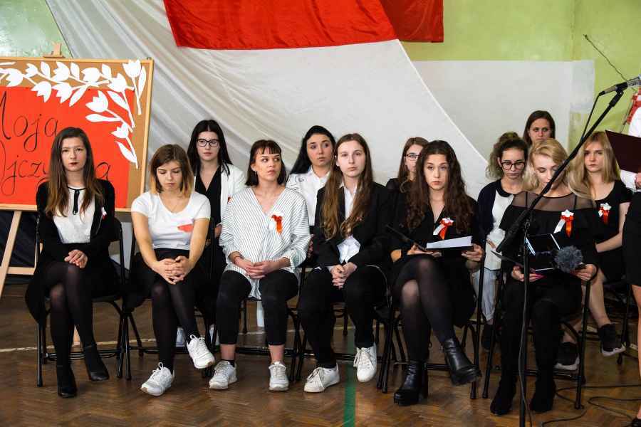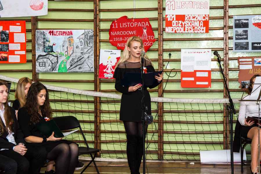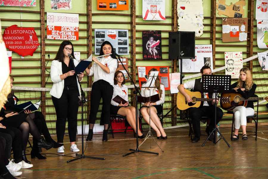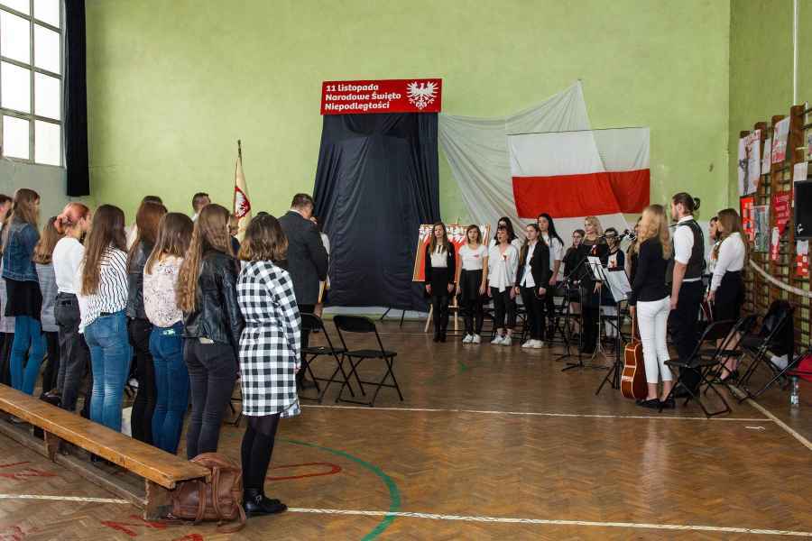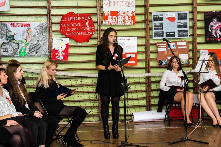 Narracja historyczna ( Kasia Baryła, Natalia Holonko – klasa IVA) była wzbogacona wierszami patriotycznymi wykonywanymi przez Marię Słoninę IV F, Wiktorię Zatkę IIIA , Maję Sikorską IA.