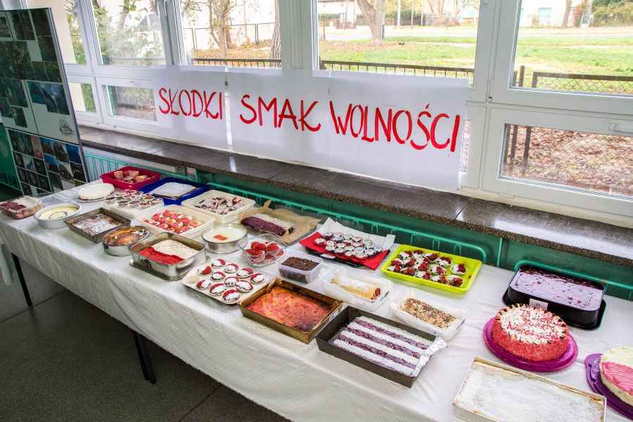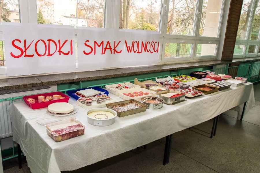 Nowym elementem obchodów 11 listopada oprócz tradycyjnych już w naszej szkole plakatów i gadżetów patriotycznych był projekt "Słodki smak wolności” w ramach którego uczniowie wykonali ciasta w barwach narodowych lub tradycyjnie polskie.