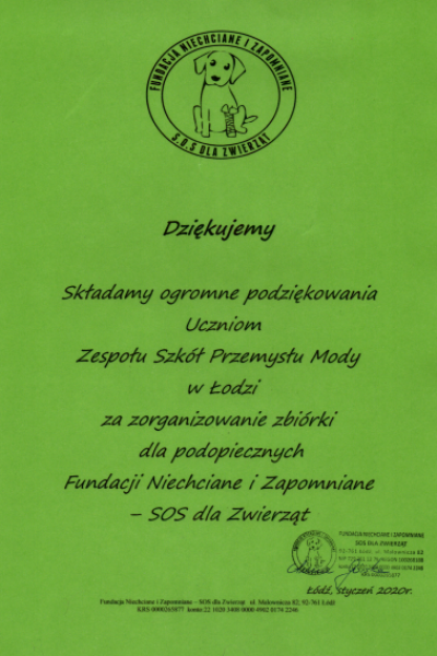 Jak co roku na przełomie listopada i grudnia w ZSPM odbyła się zbiórka na rzecz bezdomnych zwierząt. Nasze dary związane z akcją „Pomóżmy im przetrwać zimę” powędrowały do schroniska Fundacji Niechciane i Zapomniane - SOS dla Zwierząt.