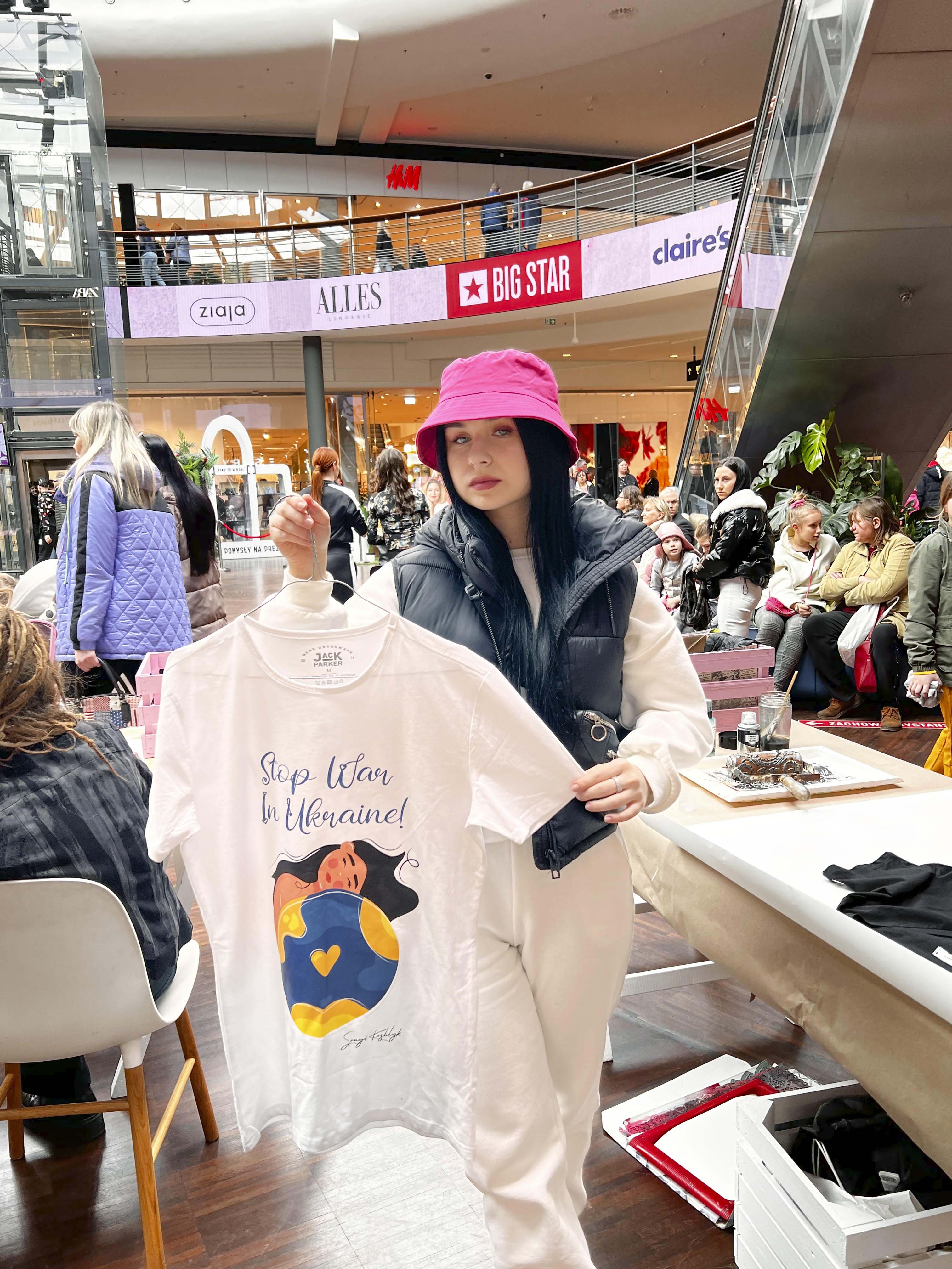 Nasza szkoła nierozerwalnie związana jest z modą. Nie mogło nas zatem na tym wydarzeniu zabraknąć, jednak tym razem to nie klasa odzieżowa prezentowała swoje wyroby, a Sonya Kushlyk z klasy 2Ca (technik grafiki i poligrafii cyfrowej), której autorską grafikę, wykonaną na koszulce, podczas zajęć dodatkowych, mogliście już wcześniej obejrzeć na naszym fanpage'u.