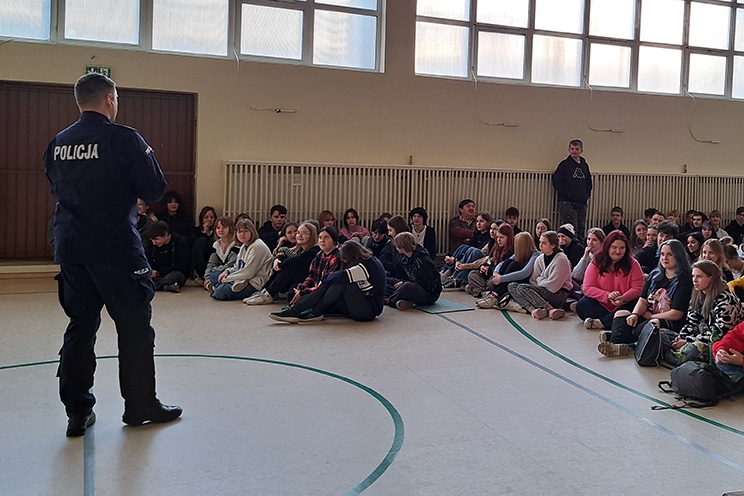 W dniu 08 stycznia 2024 na terenie ZSPM odbyło się spotkanie z funkcjonariuszem Policji, sierżantem - Jakubem Dyszkiewiczem z VIII KP Ogniwa do spraw Nieletnich i Patologii.